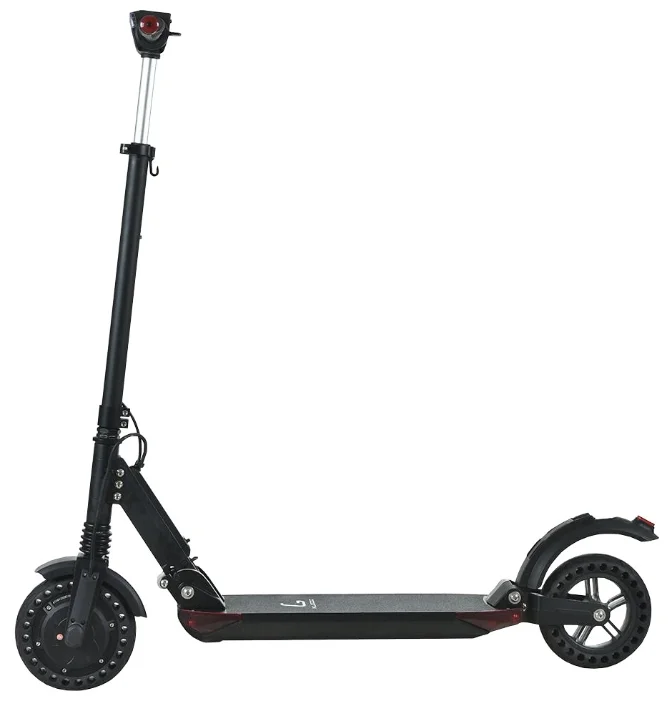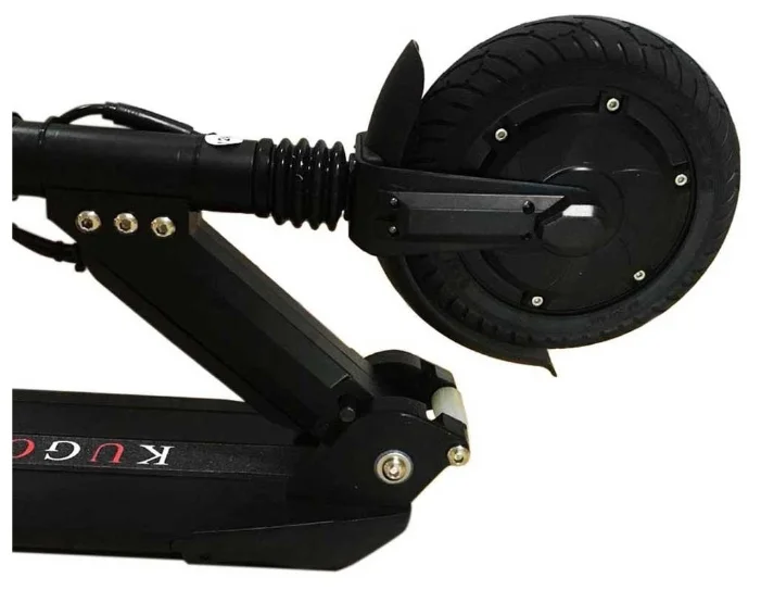 Складная конструкция Kugoo ES3 избавляет от сложностей с транспортировкой и хранением. А маленькие колесики, расположенные на деке, позволяют легко катить самокат в сложенном виде.