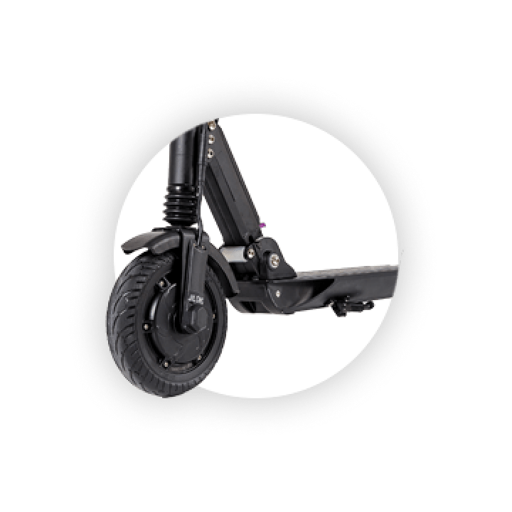 Электрический самокат оснащён 2-мя амортизаторами на каждом колесе, что способствует плавной поездке и помогает без труда преодолевать любой бордюр и другие возвышенности.