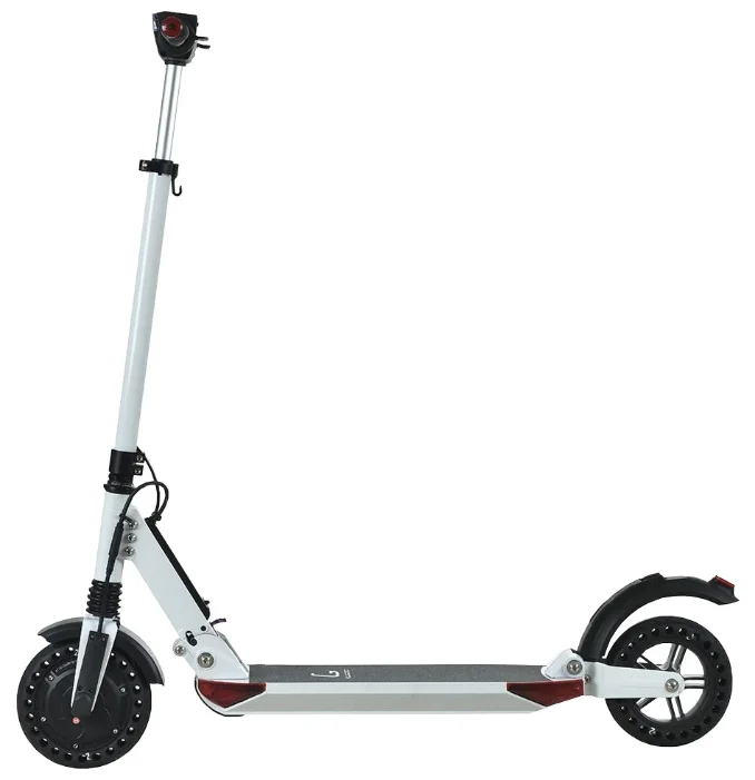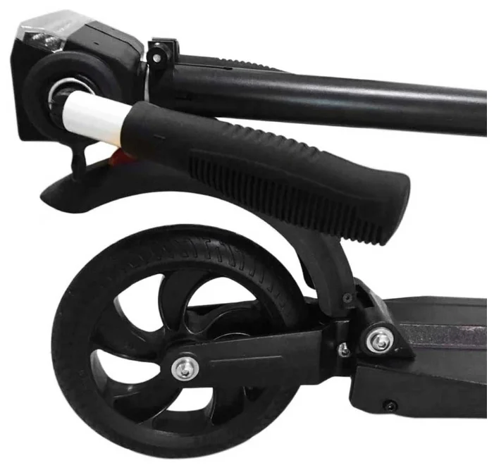 Складная конструкция Kugoo ES3 избавляет от сложностей с транспортировкой и хранением. А маленькие колесики, расположенные на деке, позволяют легко катить самокат в сложенном виде.